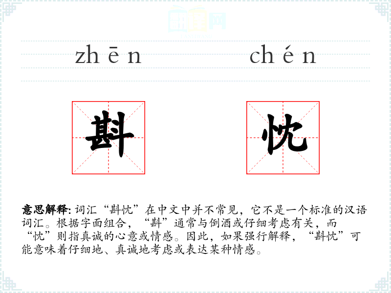 词汇“斟忱”在中文中并不常见,它不是一个标准的汉语词汇。根据字面组合,“斟”通常与倒酒或仔细考虑有关,而“忱”则指真诚的心意或情感。因此,如果强行解释,“斟忱”可能意味着仔细地、真诚地考虑或表达某种情感。