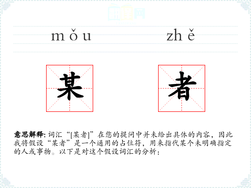 词汇“[某者]”在您的提问中并未给出具体的内容,因此我将假设“某者”是一个通用的占位符,用来指代某个未明确指定的人或事物。以下是对这个假设词汇的分析: