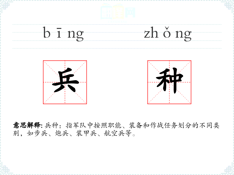 "兵种"的意思解释、兵种是什么意思由翻译网汉语词典查词提供。