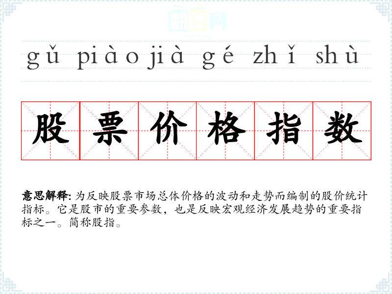 "股票价格指数"的意思解释、股票价格指数是什么意思由翻译网汉语词典查词提供。