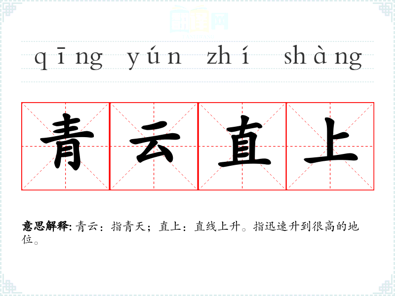 青云:指青天;直上:直线上升。指迅速升到很高的地位。