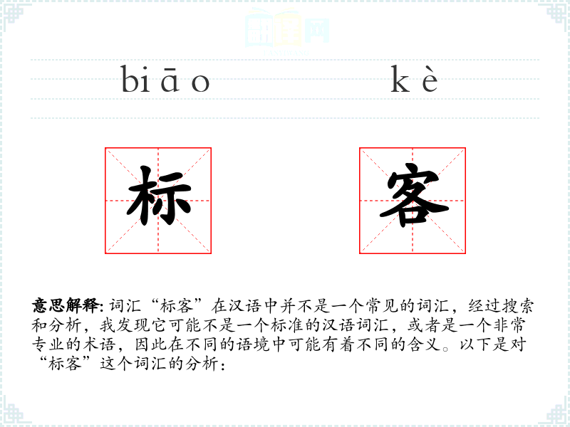 词汇“标客”在汉语中并不是一个常见的词汇,经过搜索和分析,我发现它可能不是一个标准的汉语词汇,或者是一个非常专业的术语,因此在不同的语境中可能有着不同的含义。以下是对“标客”这个词汇的分析: