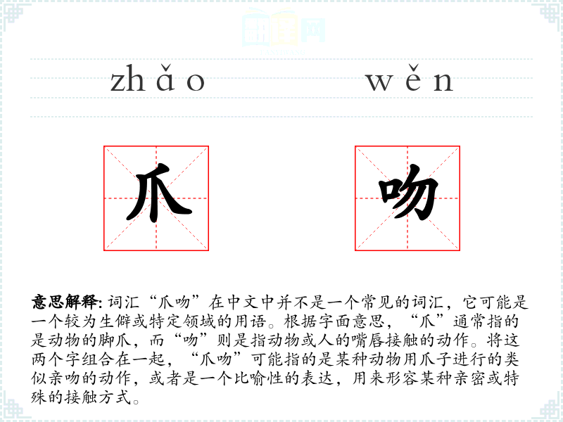 "爪吻"的意思解释、爪吻是什么意思由翻译网汉语词典查词提供。