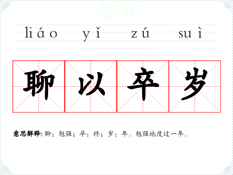 聊:勉强;卒:终;岁:年。勉强地度过一年。