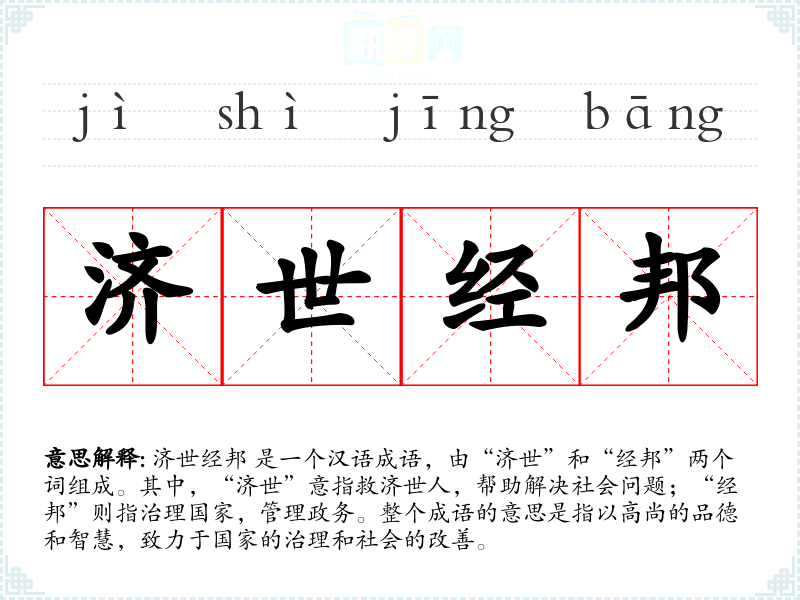 济世经邦 是一个汉语成语,由“济世”和“经邦”两个词组成。其中,“济世”意指救济世人,帮助解决社会问题;“经邦”则指治理国家,管理政务。整个成语的意思是指以高尚的品德和智慧,致力于国家的治理和社会的改善。