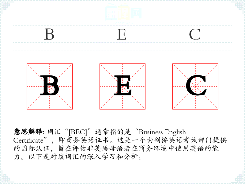- 词源:BEC源自英语,是“Business English Certificate”的缩写。