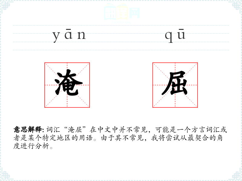 词汇“淹屈”在中文中并不常见,可能是一个方言词汇或者是某个特定地区的用语。由于其不常见,我将尝试从最契合的角度进行分析。
