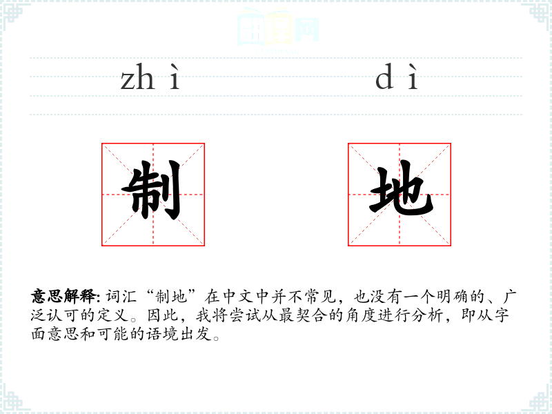 词汇“制地”在中文中并不常见,也没有一个明确的、广泛认可的定义。因此,我将尝试从最契合的角度进行分析,即从字面意思和可能的语境出发。