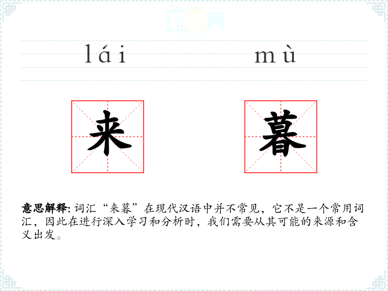 词汇“来暮”在现代汉语中并不常见,它不是一个常用词汇,因此在进行深入学习和分析时,我们需要从其可能的来源和含义出发。