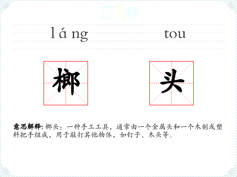 "榔头"的意思解释、榔头是什么意思由翻译网汉语词典查词提供。
