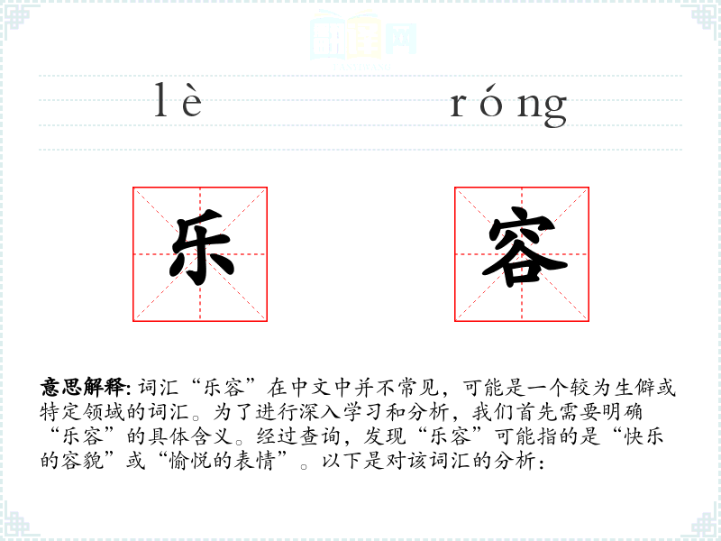 - 理解:通过分析,“乐容”是一个富有情感色彩的词汇,强调了正面情感的传递和表达。