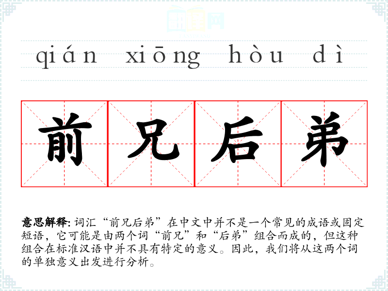 - 反义词:由于“前兄后弟”不是一个常用词汇,反义词并不适用。