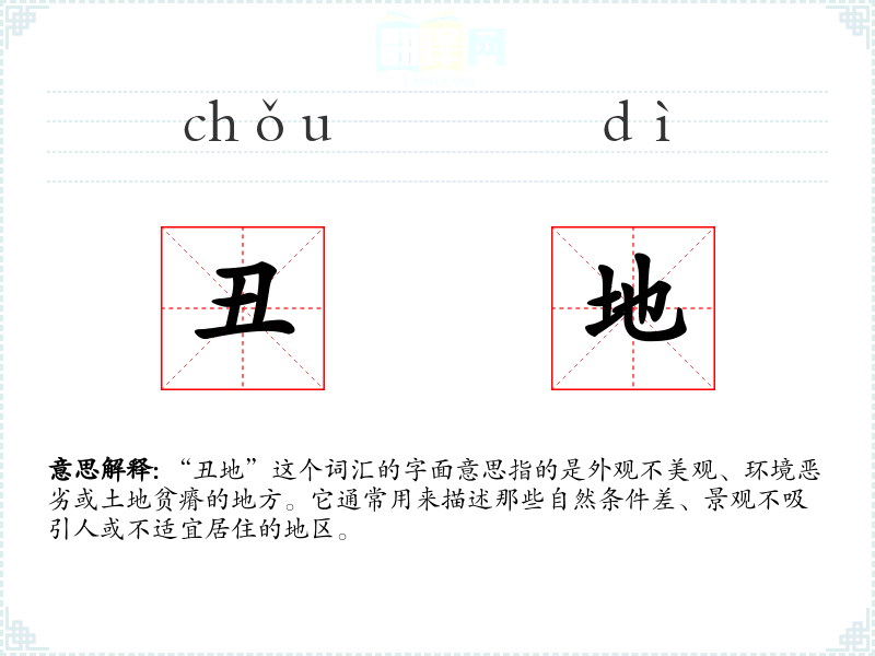 "丑地"的意思解释、丑地是什么意思由翻译网汉语词典查词提供。