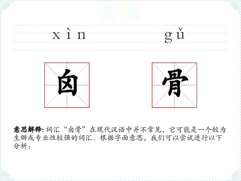 词汇“囟骨”在现代汉语中并不常见,它可能是一个较为生僻或专业性较强的词汇。根据字面意思,我们可以尝试进行以下分析: