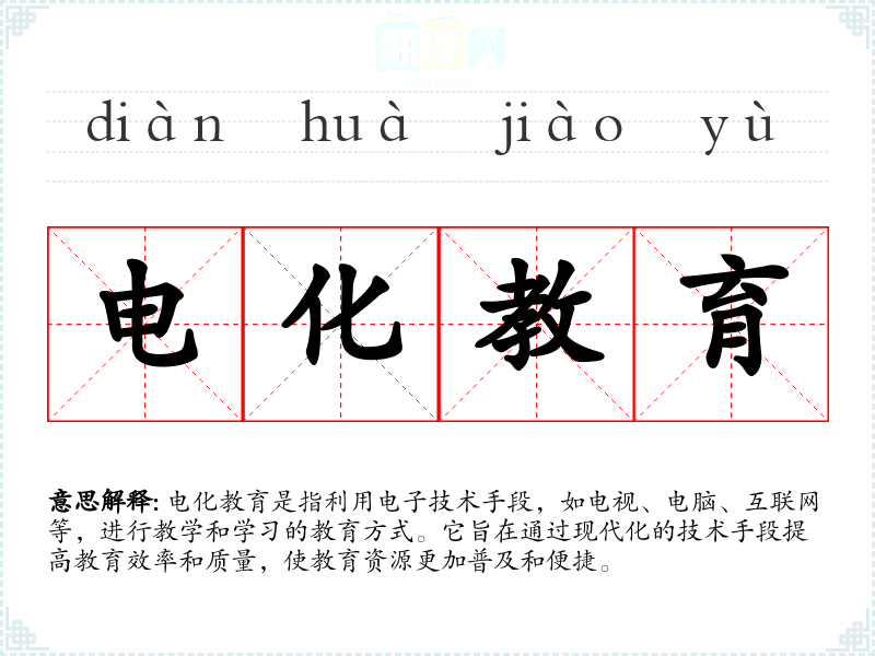 - 随着互联网的普及,电化教育已经成为提高教育普及率的有效手段。