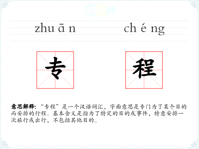 “专程”一词源于汉语,由“专”和“程”两个字组成。在古代汉语中,“专”意味着专门或专注,“程”则指行程或路程。随着时间的推移,这个词的含义基本保持不变,但在现代汉语中使用更为频繁。