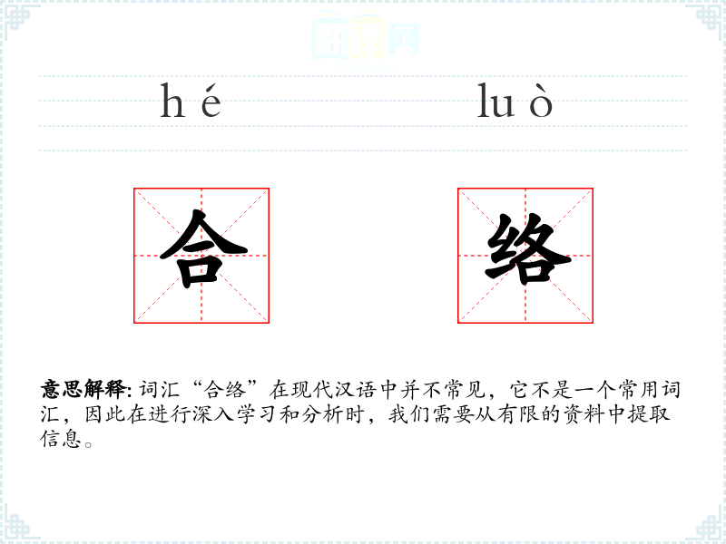 词汇“合络”在现代汉语中并不常见,它不是一个常用词汇,因此在进行深入学习和分析时,我们需要从有限的资料中提取信息。