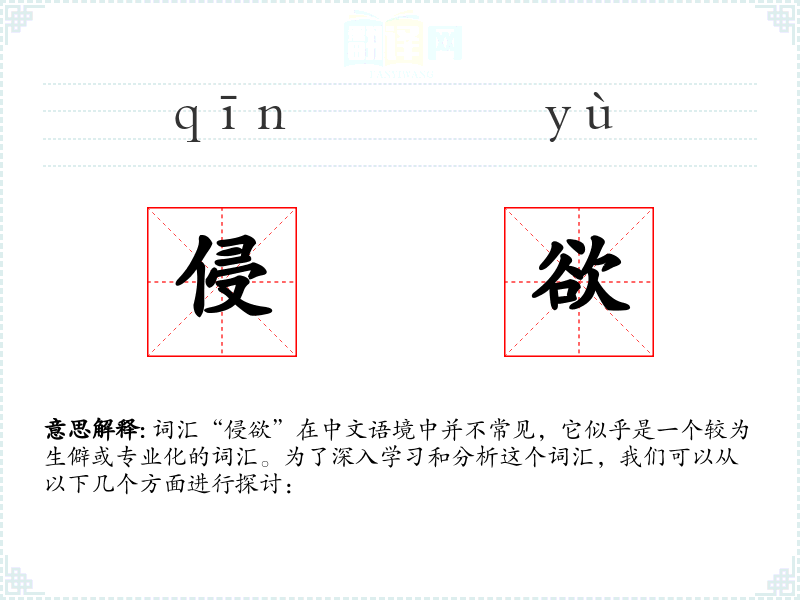 词汇“侵欲”在中文语境中并不常见,它似乎是一个较为生僻或专业化的词汇。为了深入学习和分析这个词汇,我们可以从以下几个方面进行探讨: