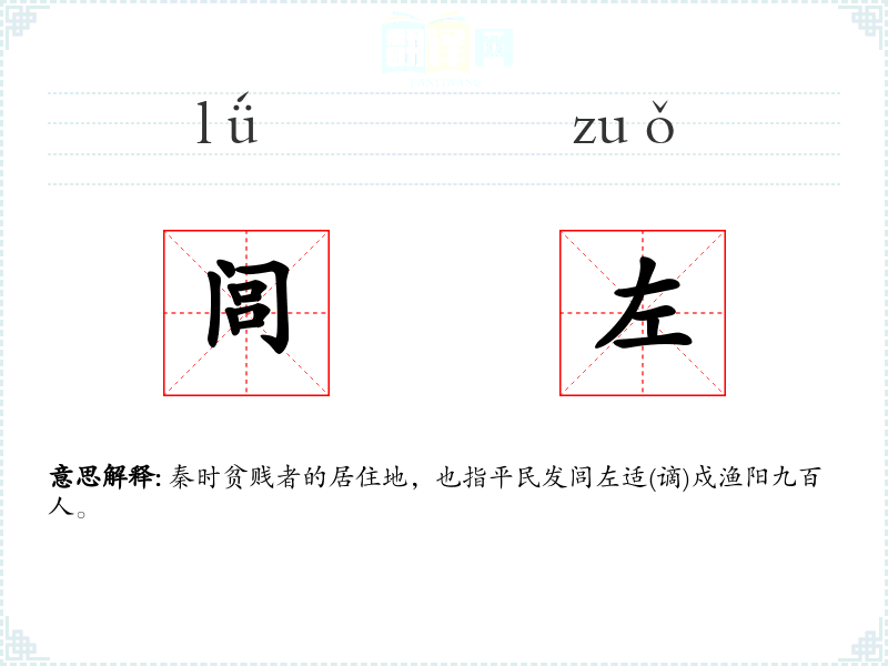 秦时贫贱者的居住地,也指平民发闾左适(谪)戍渔阳九百人。