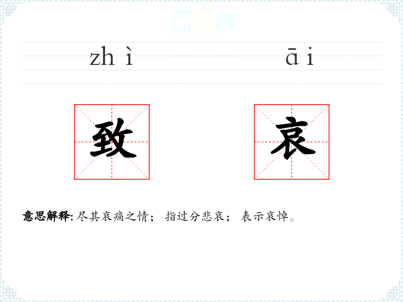 尽其哀痛之情; 指过分悲哀; 表示哀悼。