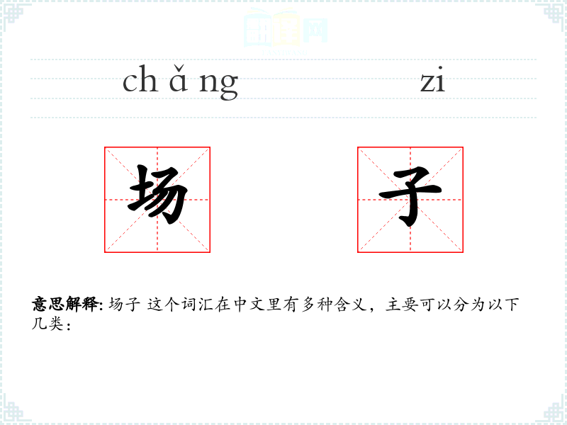 - 物理空间:指一个特定的地点或区域,通常用于容纳某种活动或**,如“市场场子”、“体育场子”。