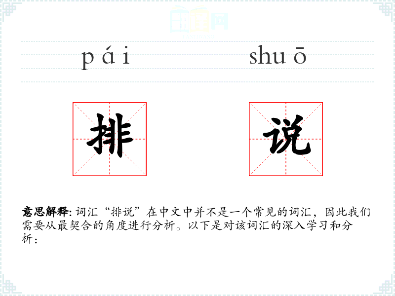 词汇“排说”在中文中并不是一个常见的词汇,因此我们需要从最契合的角度进行分析。以下是对该词汇的深入学习和分析: