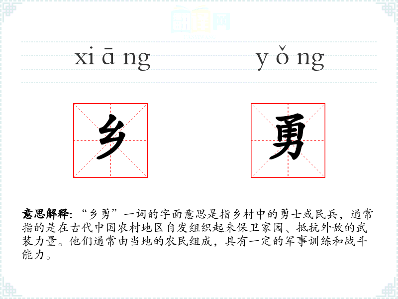 - 同义词:民兵、义勇、乡兵