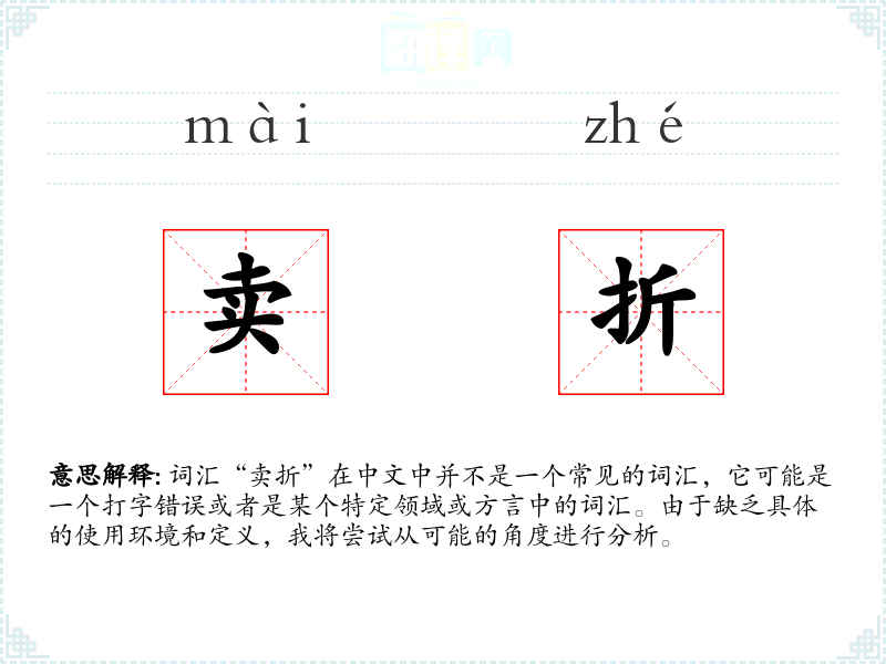 词汇“卖折”在中文中并不是一个常见的词汇,它可能是一个打字错误或者是某个特定领域或方言中的词汇。由于缺乏具体的使用环境和定义,我将尝试从可能的角度进行分析。