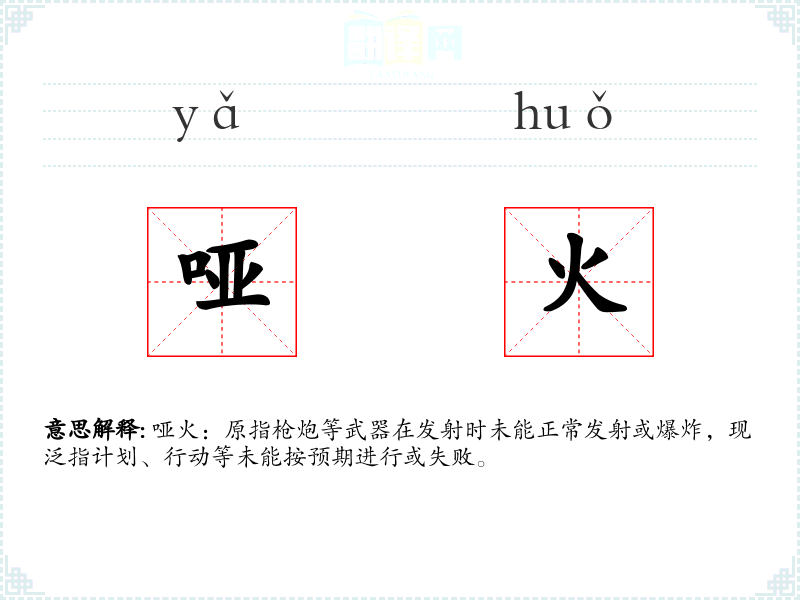 哑火:原指枪炮等武器在发射时未能正常发射或爆炸,现泛指计划、行动等未能按预期进行或失败。
