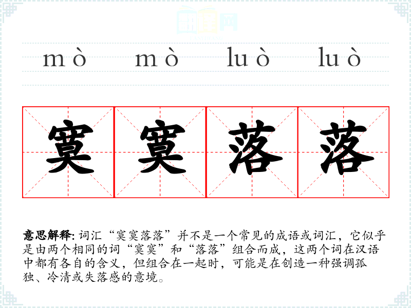 - “寞寞”和“落落”都是汉语中的形容词,它们的词源较为直接,没有复杂的演变过程。