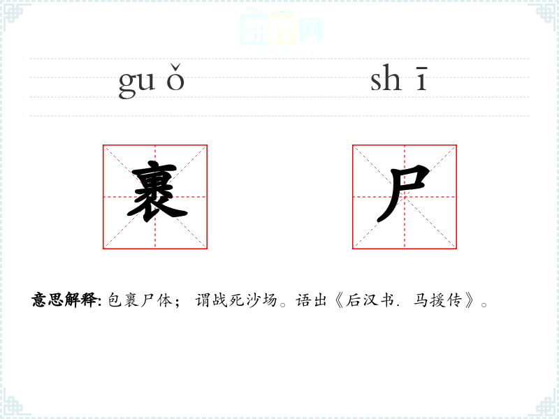 包裹尸体; 谓战死沙场。语出《后汉书.马援传》。
