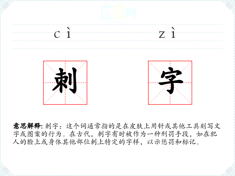 "刺字"的意思解释、刺字是什么意思由翻译网汉语词典查词提供。