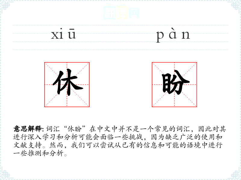 词汇“休盼”在中文中并不是一个常见的词汇,因此对其进行深入学习和分析可能会面临一些挑战,因为缺乏广泛的使用和文献支持。然而,我们可以尝试从已有的信息和可能的语境中进行一些推测和分析。