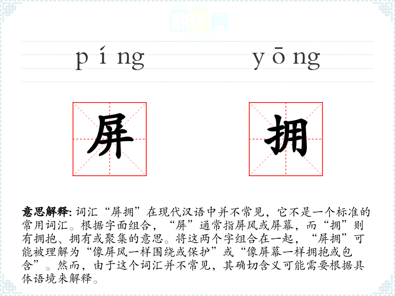 由于“屏拥”不是一个常用词汇,它在不同语言或文化中的对应词汇及其使用情况不详。