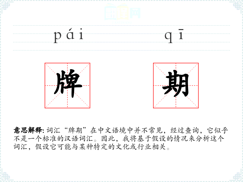 词汇“牌期”在中文语境中并不常见,经过查询,它似乎不是一个标准的汉语词汇。因此,我将基于假设的情况来分析这个词汇,假设它可能与某种特定的文化或行业相关。