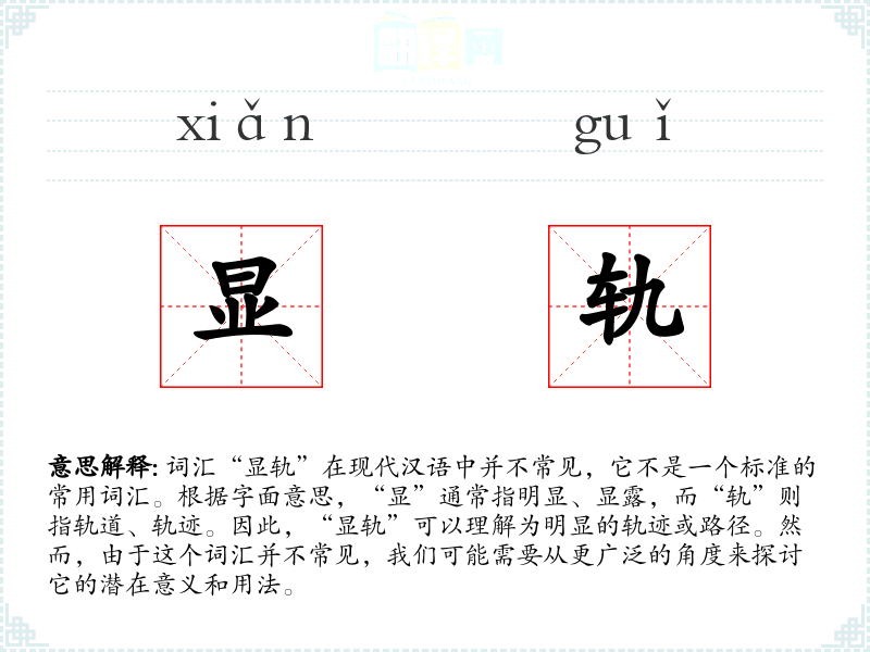 由于“显轨”不是一个常用词汇,其词源和历史演变可能不太明确。它可能是由“显”和“轨”两个常用词汇组合而成的新词,用于特定语境中表达特定的意义。