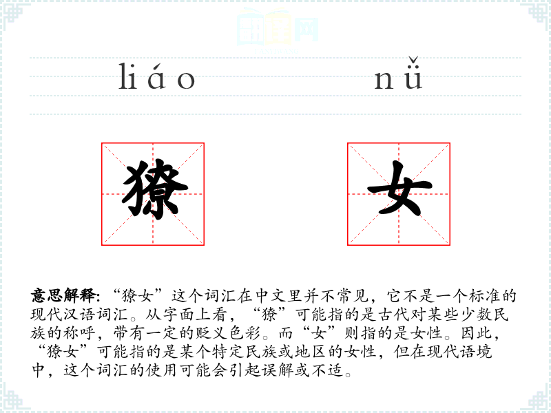 - 在现代语境中,使用“獠女”这个词汇可能会引起误解或不适。