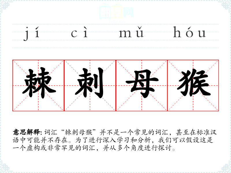 词汇“棘刺母猴”并不是一个常见的词汇,甚至在标准汉语中可能并不存在。为了进行深入学习和分析,我们可以假设这是一个虚构或非常罕见的词汇,并从多个角度进行探讨。