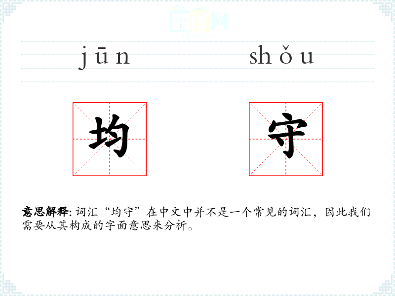 词汇“均守”在中文中并不是一个常见的词汇,因此我们需要从其构成的字面意思来分析。