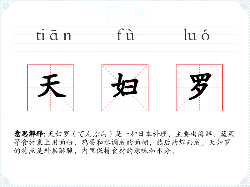"天妇罗"的意思解释、天妇罗是什么意思由翻译网汉语词典查词提供。