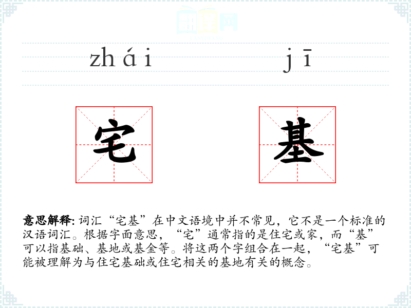 词汇“宅基”在中文语境中并不常见,它不是一个标准的汉语词汇。根据字面意思,“宅”通常指的是住宅或家,而“基”可以指基础、基地或基金等。将这两个字组合在一起,“宅基”可能被理解为与住宅基础或住宅相关的基地有关的概念。
