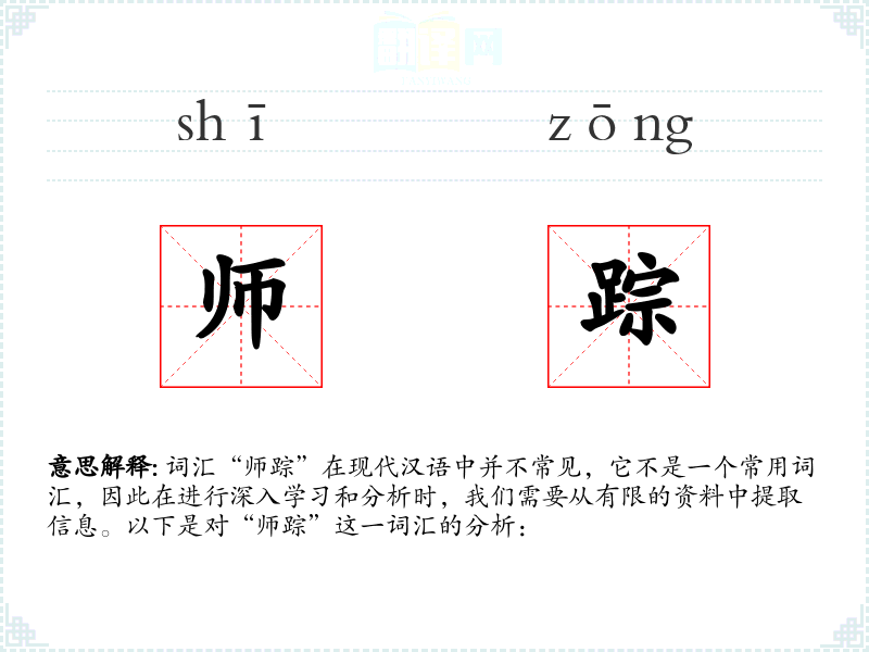 - 反义词:无(由于“师踪”不常用,反义词不明显)