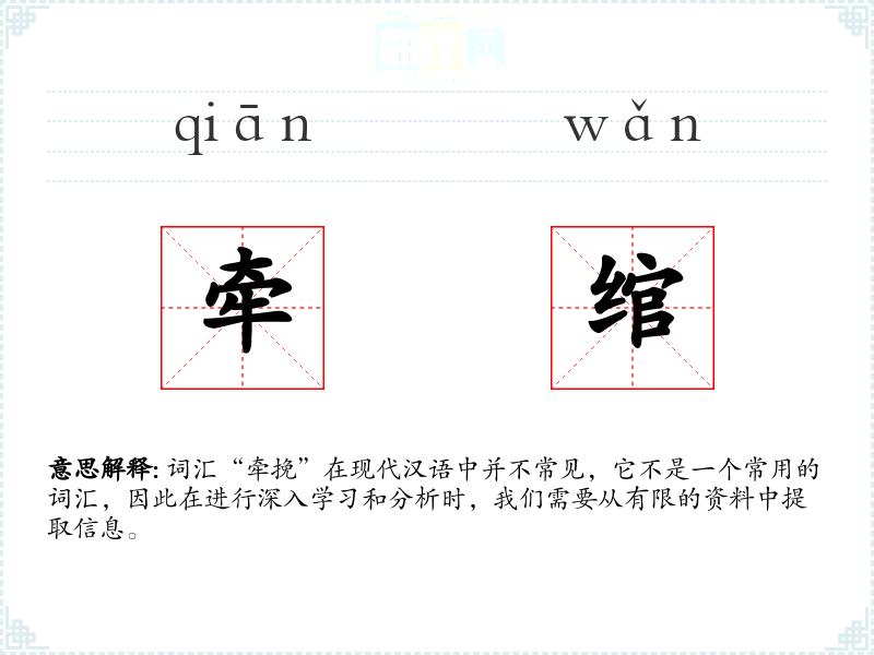 词汇“牵挽”在现代汉语中并不常见,它不是一个常用的词汇,因此在进行深入学习和分析时,我们需要从有限的资料中提取信息。