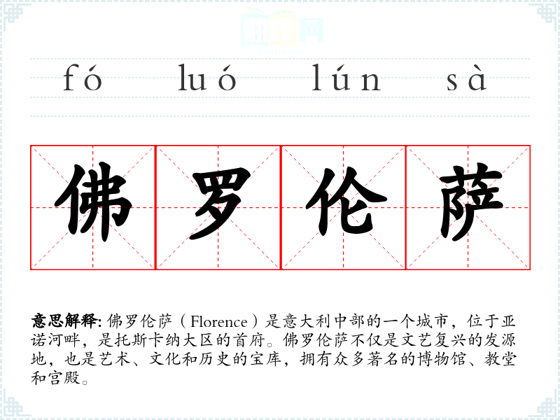 "佛罗伦萨"的意思解释、佛罗伦萨是什么意思由翻译网汉语词典查词提供。