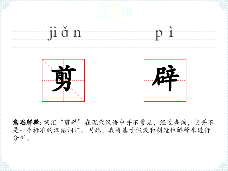 假设“剪辟”是一个由“剪”和“辟”两个字组成的词汇,我们可以推测其字面意思可能是“剪除”或“开辟”的结合,即通过剪除某些部分来开辟新的空间或路径。