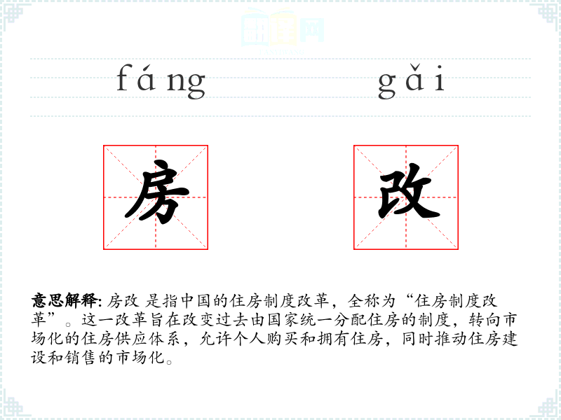 - 反义词:无(由于房改是一个特定历史时期的政策,没有直接的反义词)