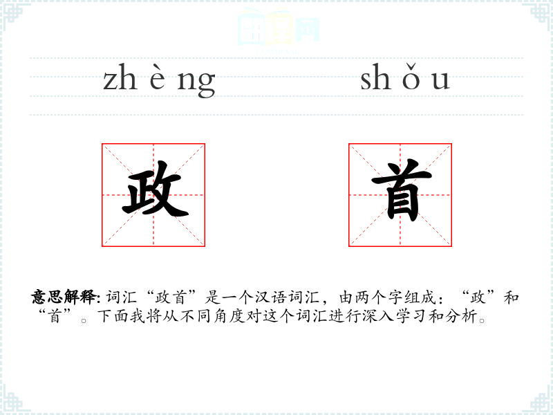 词汇“政首”是一个汉语词汇,由两个字组成:“政”和“首”。下面我将从不同角度对这个词汇进行深入学习和分析。