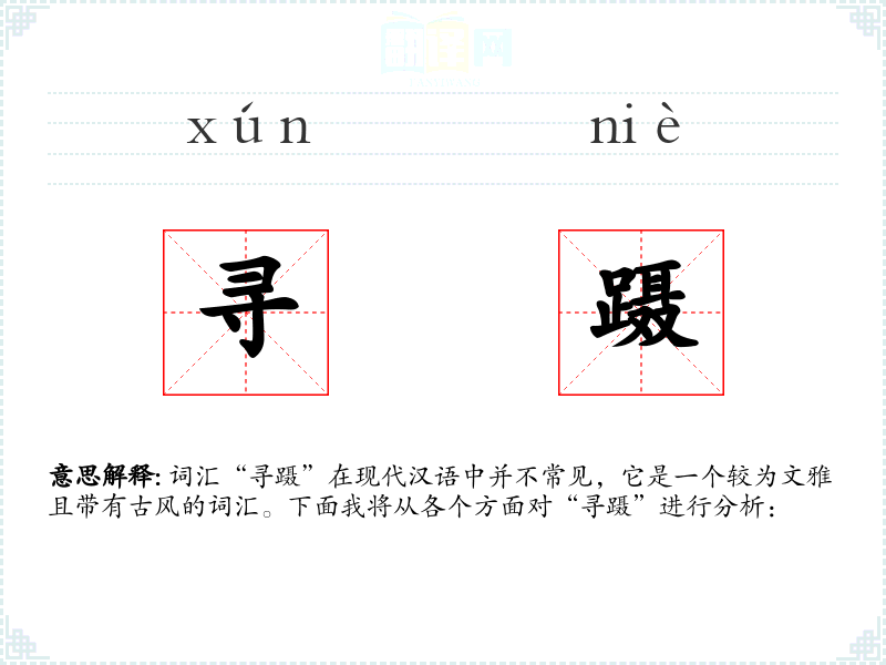 词汇“寻蹑”在现代汉语中并不常见,它是一个较为文雅且带有古风的词汇。下面我将从各个方面对“寻蹑”进行分析: