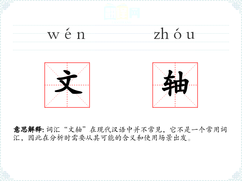 词汇“文轴”在现代汉语中并不常见,它不是一个常用词汇,因此在分析时需要从其可能的含义和使用场景出发。