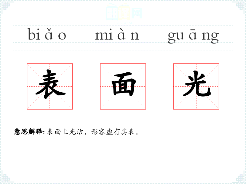 表面上光洁,形容